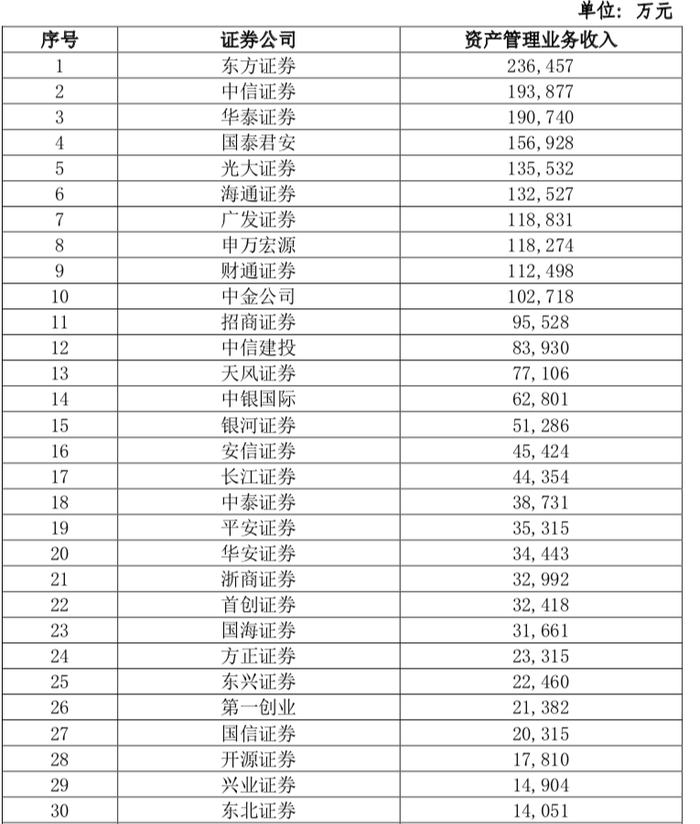 东方证券资管收入高居榜首