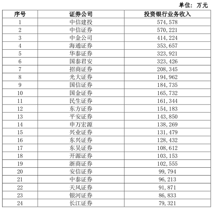 投行收入“宝座”一直被中信证券和中信建投两家大型券商争夺,2020年中信建投证券以57.46亿元收入规模拿下,比中信证券多出四千多万。