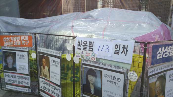 在抗议诉讼的艰难过程中,患病的工人不断去世。2012年这一年,每两个月就有一位女工死亡,她们罹患卵巢癌、乳癌、脑癌或血癌等疾病。三星半导体工厂里有很多的女工,因为化学品而严重受害。