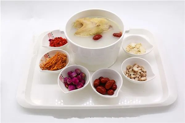 古道芍花鸡,肉质既不发柴,又不松散;同时加入芍药、人参、石斛、大枣、虫草花、枸杞子等药材,经过腌制、焯水、炖煮等工序,使得鸡肉中融入药香,汤中充满鸡肉的鲜味。