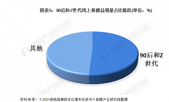 在老龄化加剧的背景下,通常市场认为VDS行业的消费主力仍将是60岁以上的老年人。然而,90后的年轻人,正在成为购买功能性食品的新生力量。亿邦动力研究院发布的《2021新锐品牌数字化增长白皮书》中显示,90后以及Z世代消费群体占据线上VDS销量超过50%。