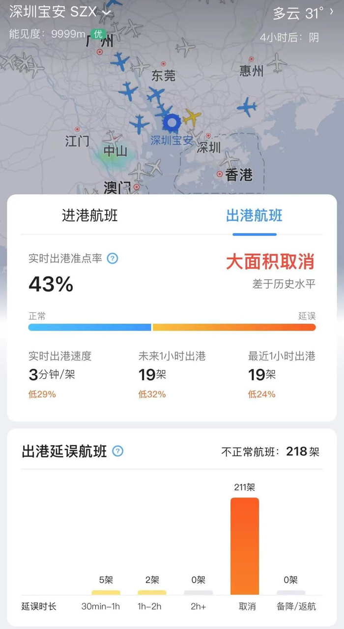 深圳机场航班大面积取消?机场回应:运行总体正常