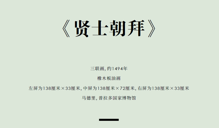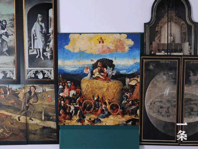 5幅作品依次为:《人间乐园》《末日审判》《圣安东尼的诱惑》《贤士朝拜》《干草车》。