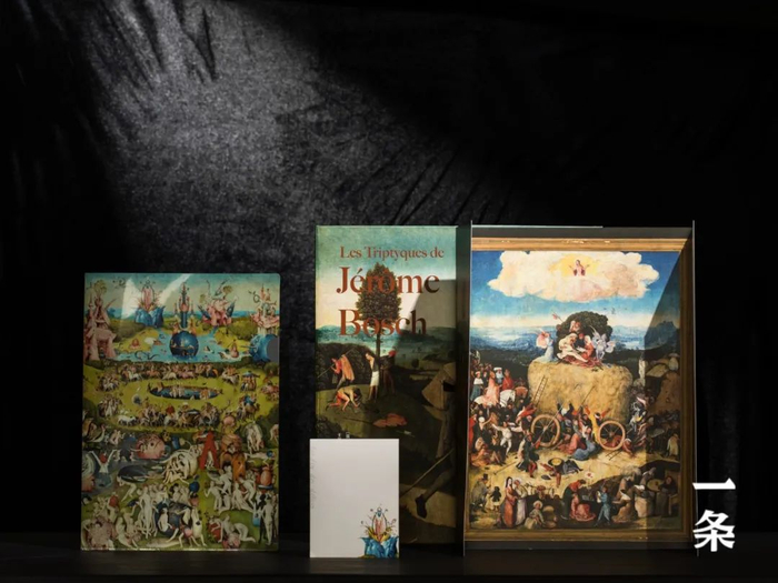三联画式对开封壳,开启书封,进入博斯宇宙。