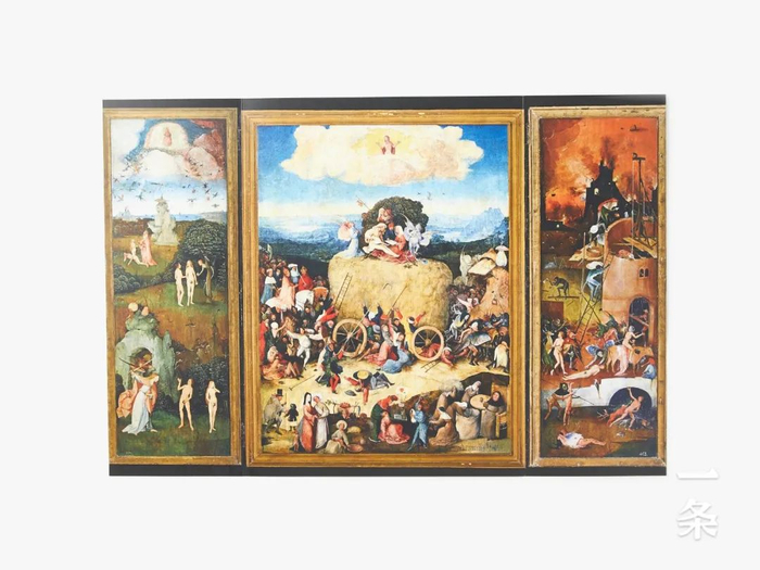 这种流行于中世纪和文艺复兴时期,拥有内屏和外屏、最多可分为5个版块、方便开合的三叶画板,正好给博斯提供了自由挥洒想象力的空间。