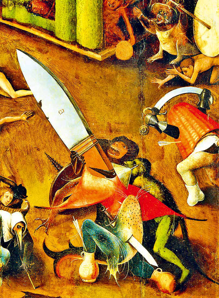 千奇百怪的人物、动物、怪物,角落里的窥探和暴力,在博斯的笔下,组合成怪诞却和谐的画面。