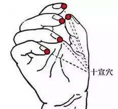 取穴方法:仰掌,十指微屈微,十宣穴在手十指尖端,左右共10个穴位。
