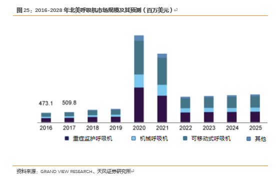 据研究机构Grandview Research 统计,2020年全球机械呼吸机市场规模为72亿美元,预计从2021年到2028年,该市场的复合年增长率将达到4.9%。可以判断的是史无前例的病毒蔓延速度将快速增加市场对机械呼吸机的需求。以北美市场为例,根据美国重症监护医学学会的测算,截止2020年第一季度美国医院呼吸机的库存约为16万台。此外美国政府有能力提供额外的1.27万台国家战略储备呼吸机。但是据美国呼吸护理协会称,截至2020年8月,美国有超过609万新冠肺炎活跃病例,估计有96万美国人在疫情期间需要机械帮助呼吸。因此,机械呼吸机的需求缺口急需填补。
