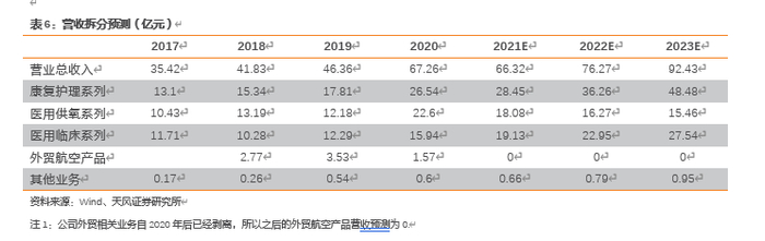 看好公司三大战略布局,未来呼吸、血糖,感控是在未来公司战略发展规划中重点聚焦的三大领域。这三条业务赛道有市场空间大,国内渗透率低等特点。以海外同赛道成熟企业的市值来推估公司的发展潜力,血糖领域的德康,呼吸领域的瑞思迈以及感控领域的艺康均是千亿市值的上市公司。此外,看好公司的线上营销能力和品牌价值管理能力。从行业角度来看,看好亚太地区老龄化趋势对家用医疗行业长期的拉动,以及疫情给中国医疗器械企业出海的新机遇。我们预计公司2021-2022年归母净利润由13.21/15.90上调至13.33/16.00亿元,2023年预计实现利润20.60亿元,选取同行可比公司医疗器械公司迈瑞医疗、海外血糖领域公司德康医疗、海外呼吸机领域公司瑞思迈,2021年三家公司的平均PE预计为97.59,给予公司估值45倍PE,对应2021年目标市值为600亿元,目标价59.85元,给予“买入”评级。