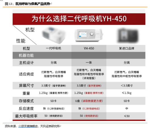 以公司产品YH-450为例,该产品属于单水平全自动呼吸机,根据使用者夜间呼吸问题的类型、严重程度、睡姿等状况,自动调整有效压力。