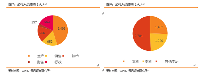 在人员方面,公司拥有一支专业化的技术团队。公司现拥有技术人员956人,占公司总人数的17.30%。公司的现有优势之一是强大的营销能力,公司的销售团队由953名员工组成。近年来公司持续优化销售体系,强化营销团队建立建设。一方面加强线下销售大区管理制度,由总部赋能大区的独立管理团队,另一方面扩大终端销售团队,通过更细化的考核标准提升团队销售的能力与品质。