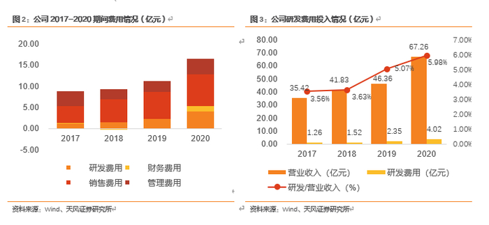 2020年公司线上业务增速超过30%,增长力度非常可观。传统的线下业务注重“销售”的能力,而线上业务需要聚焦产品、理解产品本身和消费者之间的联系。公司的线上业务基础很强也很扎实,与平台间也有长期的良好合作,数据信息的抓取、分析也较为深入。2020年期线上旗舰店收归自营,线上直营比例也有较大提升,目前占比已有70%,原来经销商承担的线上终端推广职能现在由公司电商团队承担,所以此部分费用会有对应提升,未来线上业务直营占比预计会保持在80%左右,所以后续的费用变动会比较稳定。