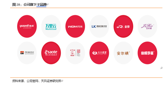 公司目前拥有“鱼跃yuwell”、“洁芙柔”、“华佗Hwato”、“金钟JZ”、“安尔碘”、“普美康PRIMEDIC”、“六六视觉”等几大主要品牌,鱼跃品牌主要用于制氧机、电子血压计、呼吸机、血糖仪及试纸、红外体温计等医疗器械产品,经过多年的努力,“鱼跃”品牌深入人心,依托鱼跃产品力的不断提升及有效的品牌传播,以及旗下产品在海内外医疗一线的卓越表现,公司品牌价值和品牌优势显著提升。“洁芙柔”、“安尔碘”系全资子公司上海中优品牌,是国内医院感染和控制领域的第一品牌,“洁芙柔”已是手消感控的代名词,院内外品牌知名度拔群,“安尔碘”更是成为国内医疗行业皮肤消毒剂的标注术语之一。“华佗” 品牌主要用于针灸针等中医器械,华佗品牌历史悠久,2011年被商务部认定为“中华老字号”,同时公司是针灸针ISO/TC249国际标准的起草者,这是中医药领域的首个ISO标准,也系我国起草的唯一医疗器械产品ISO国际标准。“金钟”品牌,主要用于医用手术器械产品,“金钟”品牌具有80多年的悠久历史,是“上海市著名商标”,在国内手术器械领域具有较高的知名度和影响力。“Primedic普美康”所属德国子公司Metrax GmbH,Primedic在医疗急救领域拥有40余年的经验,旗下AED(自动体外除颤器)与心脏除颤监护产品在全球医疗急救行业具备较高的知名度。六六牌眼科器械、六六牌眼科显微镜连续多年被认定为江苏名牌产品,六六牌眼科显微镜曾获中国名牌称号;“六六”商标连续多年被认定江苏省著名商标与苏州市知名商标,具有较高的知名度。