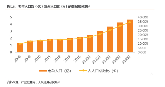 全球及中国老龄化趋势是拉动家用医疗产业的一个重要因素。全世界老年人口超过1亿的国家只有中国。2亿老年人口数几乎相当于印尼的总人口数,已超过了巴西、俄罗斯、日本等人口大国的人口数。如果作为一个国家的总人口数,也能排世界第四位。预计2033年前后将翻番到4亿,到2050年左右,老年人口将达到全国人口的三分之一,“银发潮”将对中国的经济、社会、政治、文化发展产生深远的影响。老年人群体具有慢性病患病率高和医疗卫生需求大等特点,随着人口老龄化不断加剧,家用医疗器械市场将获得的发展的持续需求潜力。