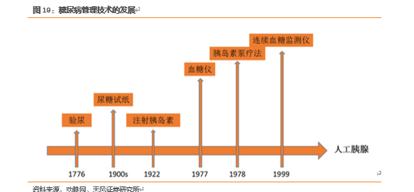 CGM(Continuous Glucose Monitoring),即连续血糖监测系统,是指通过葡萄糖感应器监测皮下组织间液的葡萄糖浓度而间接反映血糖水平的监测技术。从糖尿病治疗管理技术的发展史我们可以看到,CGM首次出现是在1999年。该技术于1999年获得美国食品药品监督管理局批准,2001年获我国食品药品监督管理局批准并应用于临床及研究中。