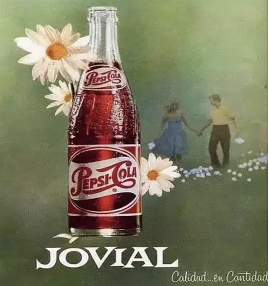 早期的百事可乐包装,字体模仿了可口可乐的飘带