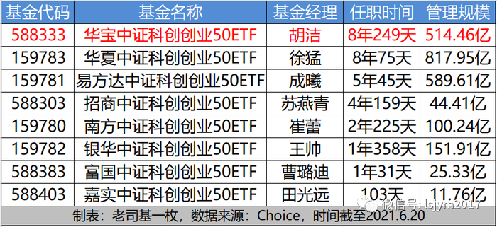 老司基个人比较关注的是华宝中证科创创业50ETF,场内简称:双创龙头ETF,认购代码:588333。理由有三:一是基金代码好记;二是产品简称很符合指数气质,双创龙头,很霸气;三是基金经理管理经验是9只产品中最丰富的。