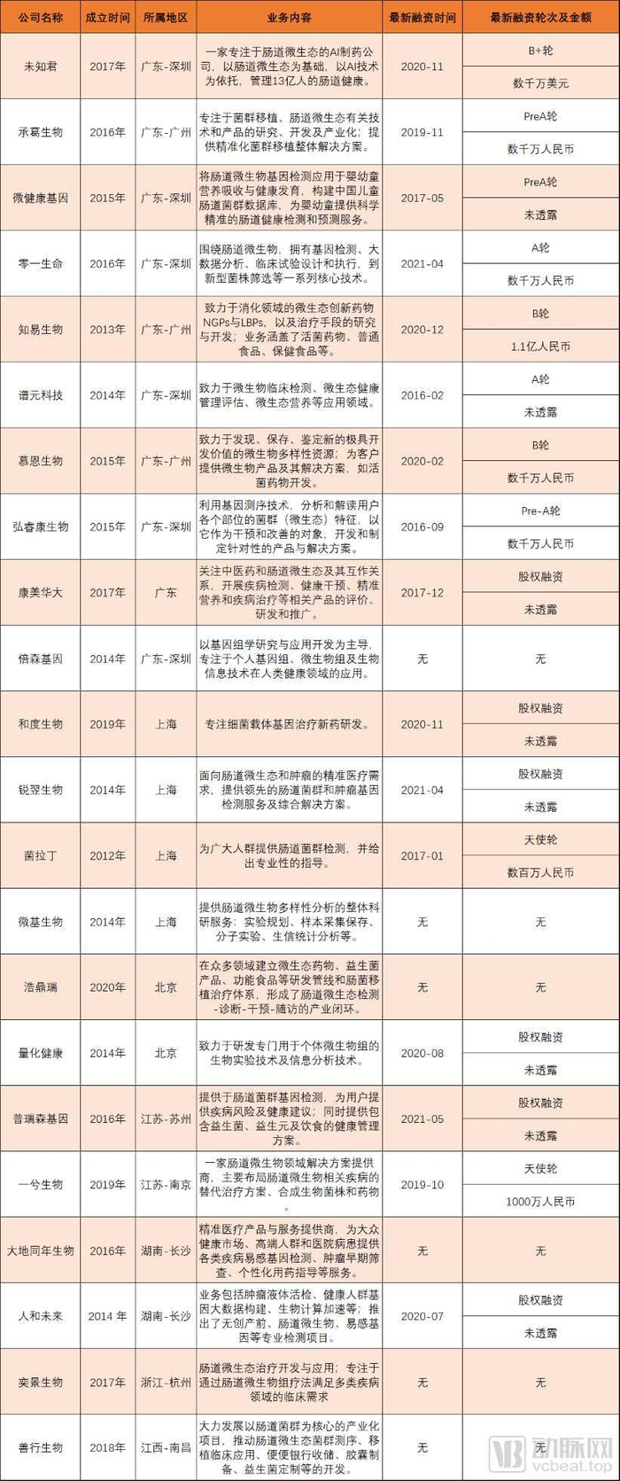 以肠道菌群(肠道微生态)为关键词,本文全统计了22家布局肠道菌群业务的企业,汇总如下表。