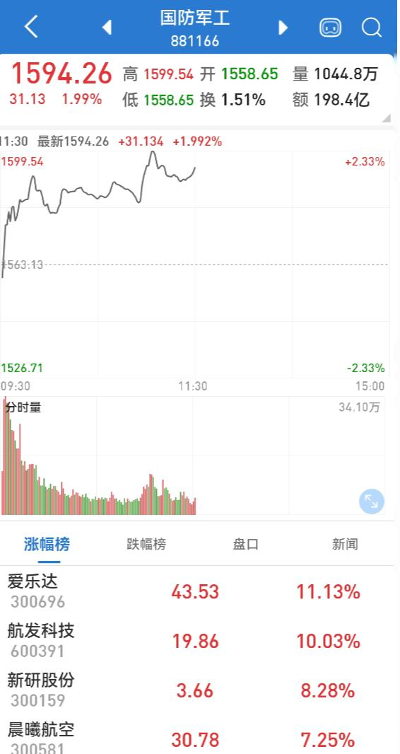受此消息影响,今日早盘,国防军工板块放量上扬,板块指数连续第3日上涨,并创出近3个半月来新高,东土科技20%涨停,爱乐达、铂力特、新研股份、皖通科技等涨停或涨超10%。军工方面的ETF基金今日也纷纷上扬,涨幅居前。