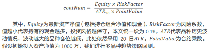 本文以Henrik和Rasmus(2014)提出的固定比例法给各品种设定仓位,即单品种开仓合约手数
