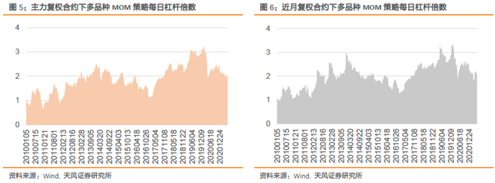 策略平均杠杆倍数1.8,最大杠杆倍数3.3,与MOM策略接近。