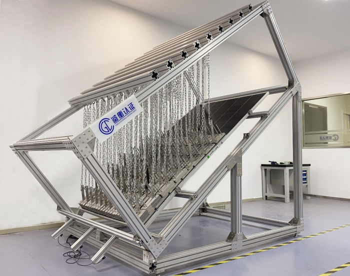 天合光能至尊670W系列产品的不均匀雪载测试在鉴衡认证华东光伏检测中心进行。为了提供更好、更全光伏组件测试服务,CGC经过前期的设备研发、配件选型、技术攻关,实验室人员技术培训,已经完全具备针对大尺寸组件IEC 62938:2020不均匀雪载的测试能力。