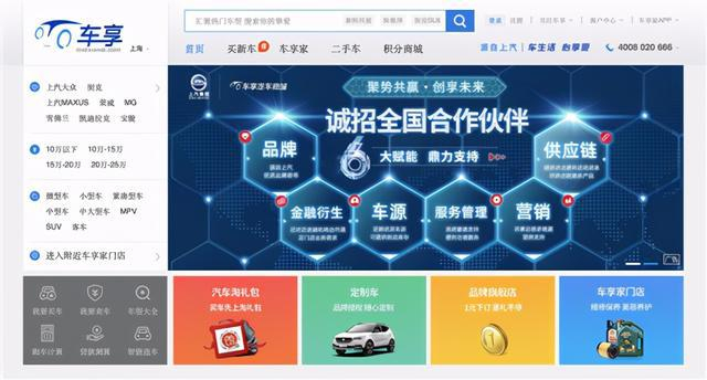 2014年,车享网概念在移动互联网尚未大规模兴起时便已落地,这个基于PC端的平台一开始的定位就是上汽集团的O2O独立电商平台,它依托上汽集团旗下的各大品牌及数千经销商,旨在为客户提供一站式解决方案,包括汽车销售及售后服务。
