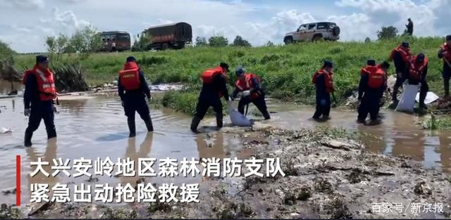 原标题:大兴安岭7条主要河流超警戒水位 实拍森林消防连夜加固堤坝