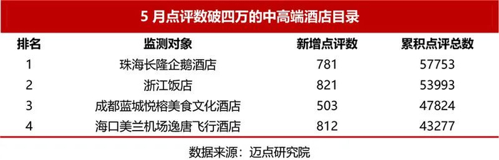 4家酒店累计点评总数超过四万,新增点评数环比下降77.97%