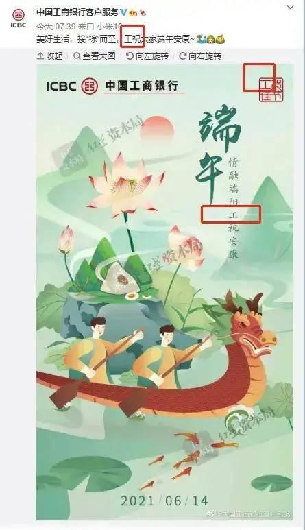 工商银行端午海报“恭祝”写成“工祝” 错别字还是谐音梗?