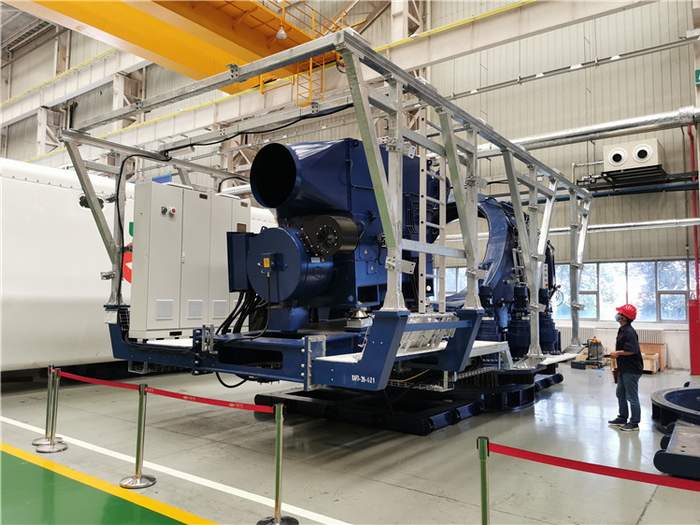 “这台风电机组的轮毂高达170米,整机长度比一列复兴号标准高铁车组还要再长一节车厢。它刷新了全球最高的风力发电机组纪录。”许继集团所属许继风电科技公司总工程师程林志介绍说。