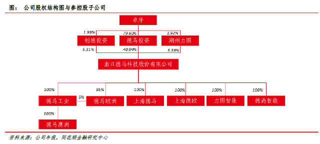 股权结构稳定,高管团队经验丰富。公司实际控制人卓序通过德马投资、创德投资、湖州力固间接持有公司32.08%股份,为公司实际控制人。公司下辖德马工业、上海德马、上海德欧、力固智能、德尚智能、德马欧洲、德马澳洲等子公司/孙公司,覆盖零部件制造、系统集成、境外生产销售等公司业务全产业链。创始人卓序从1988年开始在行业内发展,积累了30多年行业经验,同时公司高管团队在行业内和在德马工作时间都较长,高管团队行业经验丰富,随着公司共同成长。