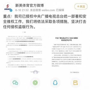 的确,体育赛事版权与合法内容不容践踏。在第九届网络视听大会‘5G视听+体育’论坛上,国家广播电视总局相关领导就再次强调,‘要全面加强知识产权保护工作,充分开发利用版权,规范使用,防范侵权盗版。这里面不仅是影视剧版权,也包括体育版权。也希望产业各方一道,共同努力,推动构建新发展格局。’