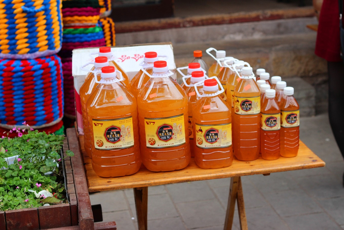 梅子的品种大多酸涩,最宜泡酒。滇西多山泉,好泉水处总有人酿酒,苞谷酒最多,次之有苦荞酒和高粱酒。泡梅子酒,要用纯度较好的高度白酒,才浸得出好颜色,留得住果香。洗干净的梅子晾干去水,和大块黄冰糖一起泡进白酒,存得越久,越显醇香。