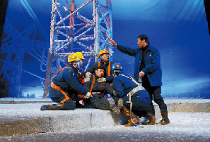 生活是创作的源泉。一场历史罕见的自然灾害,导演出一幕幕电网人不畏艰难困苦、英勇抗冰救灾,再次点亮万家灯火的话剧,以及关于他们理想、信念、亲情、同志情和喜怒哀乐、悲欢离合的故事。话剧《冰雪丹心》让这些经过整合、取舍、归纳的典型人物走近观众,震撼观众的心灵,让观众感受这可歌可泣的一幕幕。