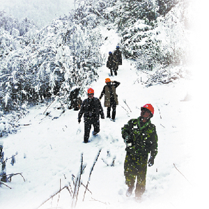 国家电网公司员工在抗冰抢险途中。