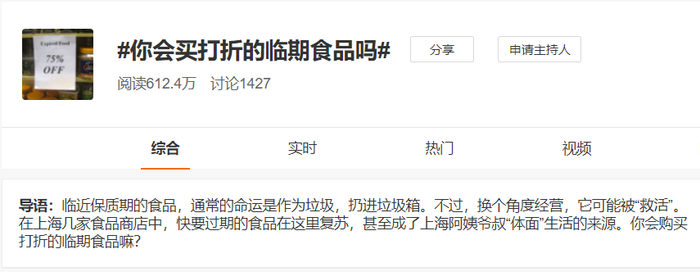 微博上曾发起过一个关于临期食品的话题讨论,阅读量达612.4万。