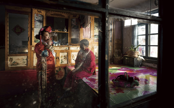 作为中国人口最多、分布最广的汉族如何表现,令人好奇。为此,在进行汉族的拍摄前,陈海汶首先想到这三个地方:最早的汉土咸阳、母亲河黄河壶口、儒家思想发源地曲阜。最终,陈海汶以曲阜的崇光门为背景,综合中山装等汉族在各分布地的特色服装,以孔家三代人为结构形成了汉族的全家福。