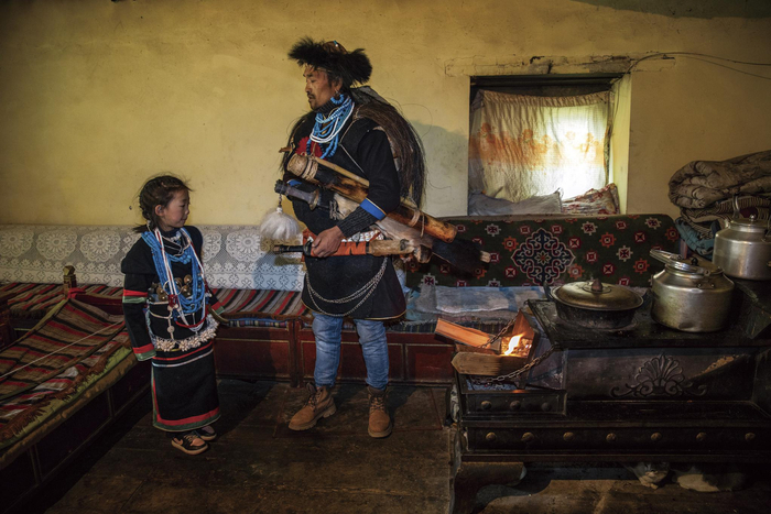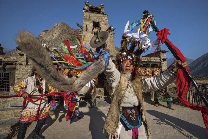 2020年11月,四川阿坝藏族羌族自治州理县桃坪羌寨,羌族释比传人
