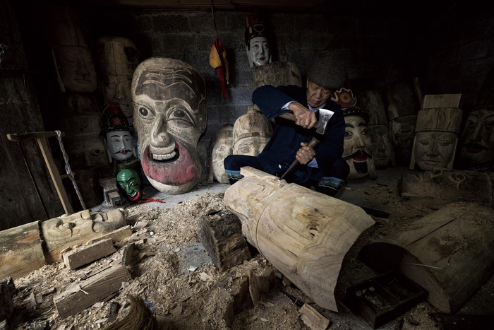 2020年4月,广西壮族自治区河池市环江县下南乡中南村南昌屯,毛南族民间傩具手工艺传人