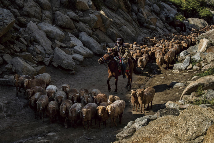 2019年9月,新疆维吾尔自治区阿勒泰地区,哈萨克族人转场途中