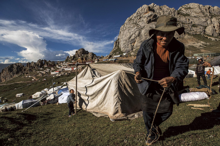 2017年7月,西藏昌都,丁青县孜珠山海拔4800米,参加12年一遇的藏族苯教神舞法会活动的藏民
