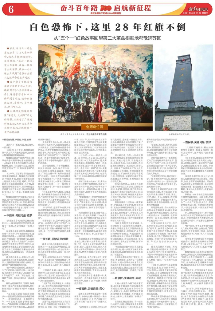 鄂豫皖苏区中的安徽省六安市金寨县,是中国革命的重要策源地、人民军队的重要发源地。91年后,新华每日电讯记者深入大别山腹地,重访这个红色地标的山山水水,追寻“28年红旗不倒”的历史逻辑……