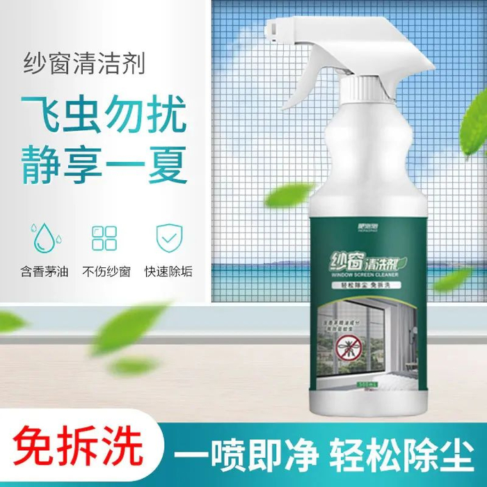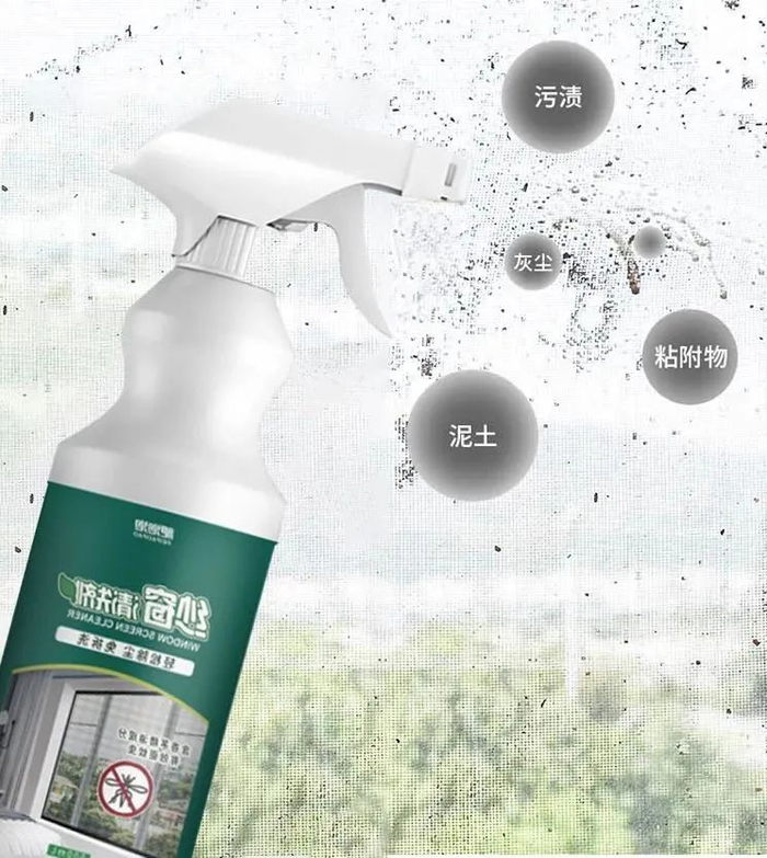 它的成分中具有强力去污因子能够随着清洗剂依附在纱窗上,将污渍紧紧包裹住。