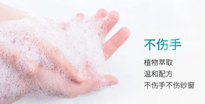 本款纱窗清洁剂采用温和配方,泡沫型清洁,温和舒适。