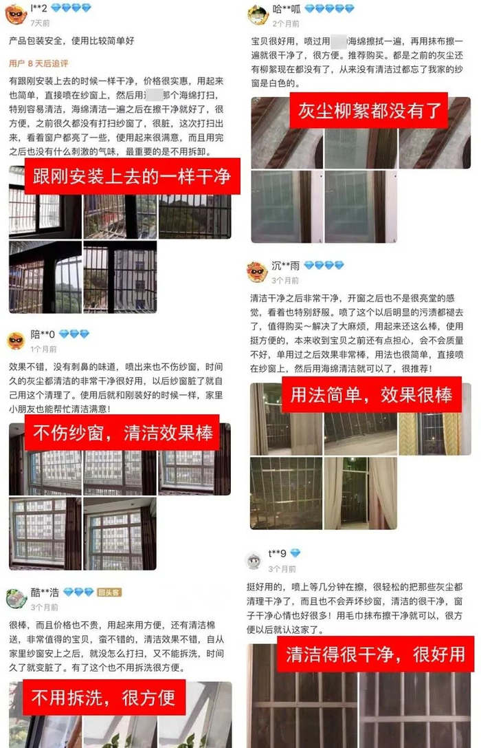 用它清洁后的纱窗真的太干净了!原本脏的旧纱窗,就这么喷一喷,再擦一擦就变得像新纱窗一样。