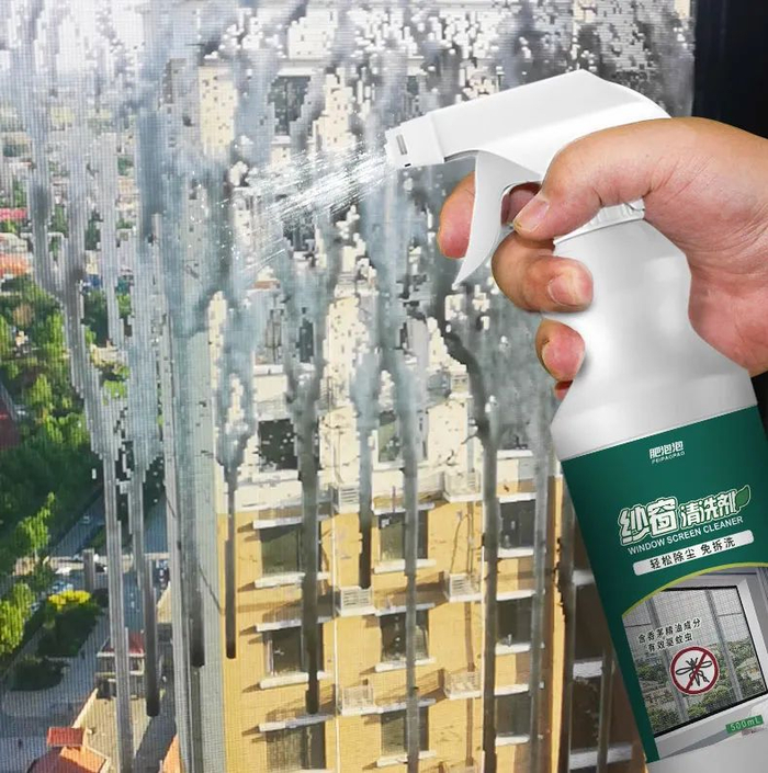 有了本款纱窗清洗剂,只要喷一喷,里里外外的脏污垢全都溶解了。
