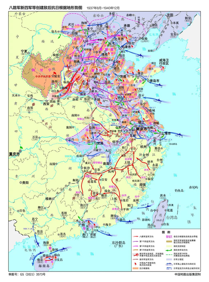 地图上的党史㉒| 八路军新四军等创建敌后抗日根据地形势图