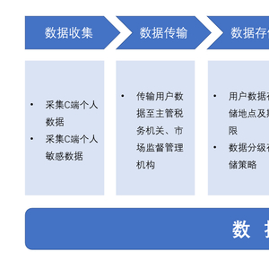 (1)从最开始针对灵工人员的个人数据(含个人敏感数据)收集;(2)到将前述收集的用户数据传输至主管市场监督管理局及主管税务机关以完成工商登记、税务登记、申报纳税等事宜;(3)到存储数据以供后续数据的调用及大数据分析;(4)再到不同业务功能下的数据使用及共享;(5)直至最终应用户要求或在用户注销账号时进行数据删除或匿名化处理。