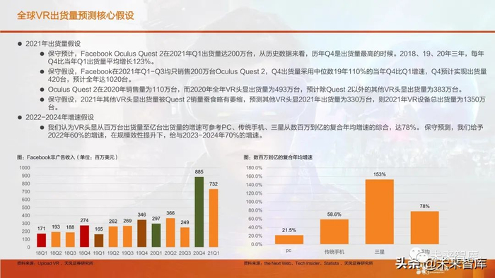 FB发言人称Quest 2的MAU仅仅7周就超越了Quest,而Quest在Quest 2发布前一共为FB贡献了1.5亿美元收入(App+游戏),而预售 量是Quest 5倍的Quest 2有望为公司贡献更高收入。截至目前,Quest 2在短短6个月内的出货量已达500万台,而上一代最佳销量的VR头显PlayStation VR耗时 5年才达到500万台的里程碑。同时,大部分的VR开发人员开始专注于开发Quest游戏,趋势可见。我们认为,Quest 2有望带动2021年VR头显出货量在下半年达到1000万台,奇点将至。